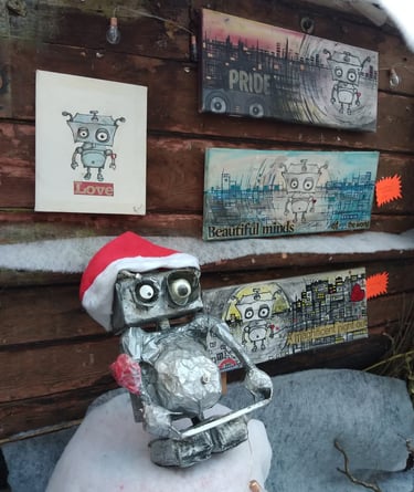 Written in 2017 by the artist and illustrator Vicky Steane, Little Robot Stories are short, rhyming, illustrated stories about Little Robot, who wears his heart on his sleeve, and his adventures into a human world with his friends.